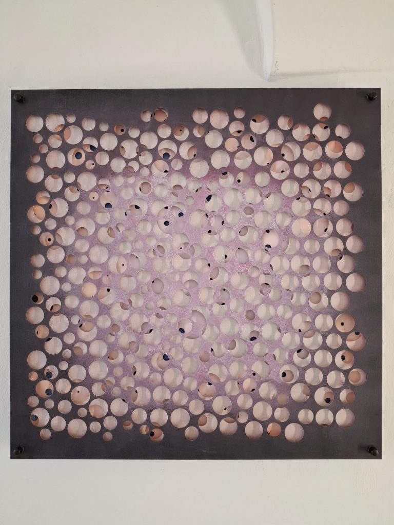 Die Ausstellung im Kunstkontor Nürnberg legt den Fokus auf aktuelle Werkserien. Landkartenbilder, geschlichtete Malerei, geprägtes Bütten, geschichtete Lochbleche sowie Stein- und Schriftskulpturen präsentieren den etablierten Österreicher als einen vielschichtigen, experimentierfreudigen und feinsinnigen Künstler.