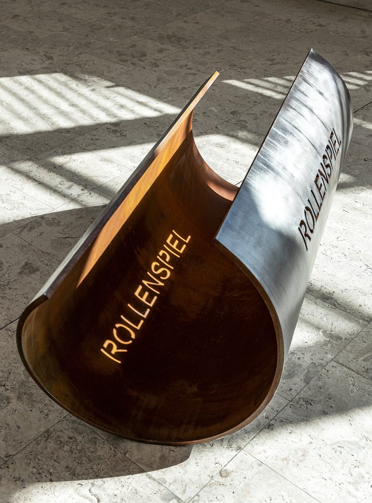 Kos nimmt die Überlegung beim Wort und lädt zu einem klugen Spiel von künstlerischem Nominalismus ein. In der Werkserie der Antonym- und Synonymskulpturen legt er die skulpturale Form und den lesbaren Begriff mit passgenauer Deckung übereinander und lässt den Betrachter die zeitgleiche Gegenwart von denkendem und sehenden Verstehen wahrnehmen.